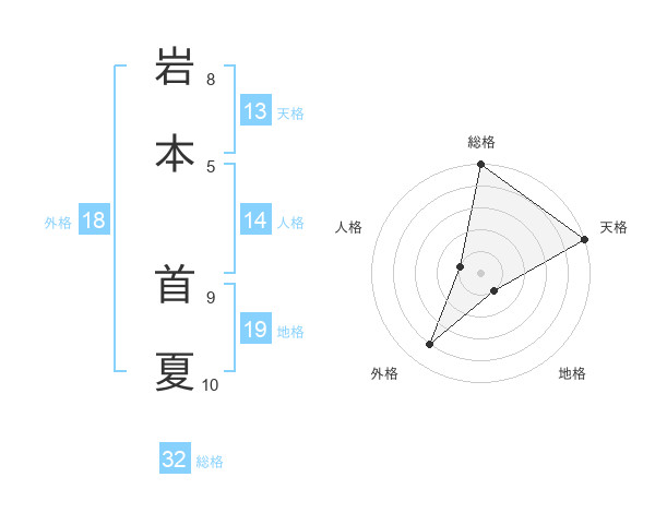 岩本 首夏さんの総格は32画の5点!