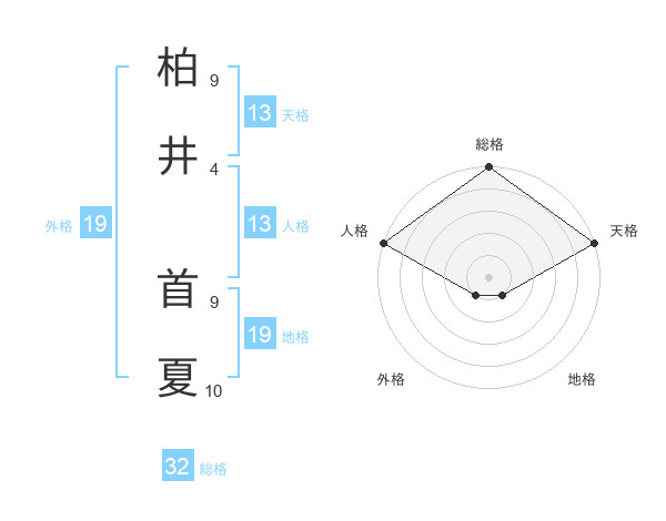 柏井 首夏さんの天格は13画の5点!