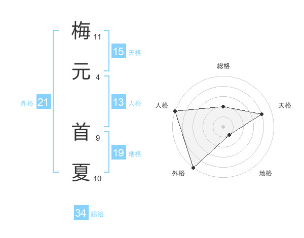 梅元 首夏さんを姓名の画数から五運を鑑定