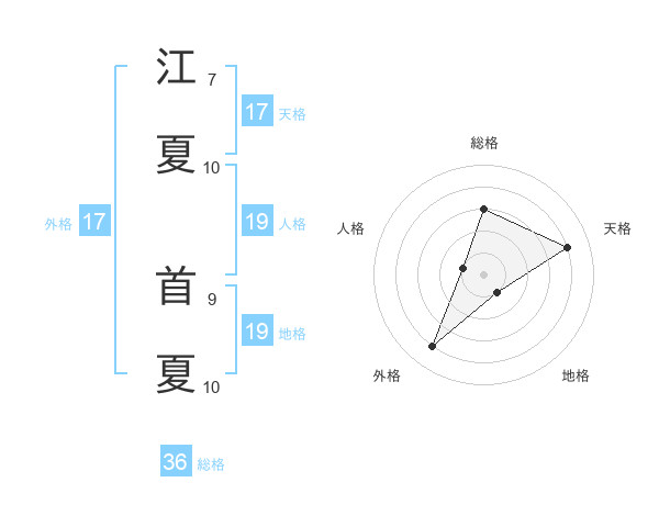 江夏 首夏さんを姓名の画数から五運を鑑定