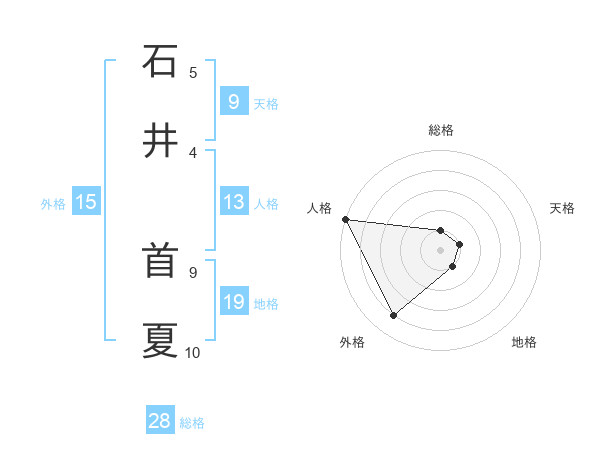 石井 首夏さんの総格は28画の1点!