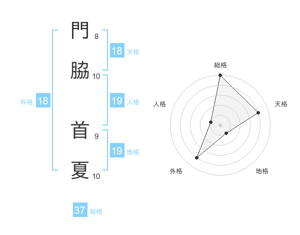 門脇 首夏さんの総格は37画の5点!