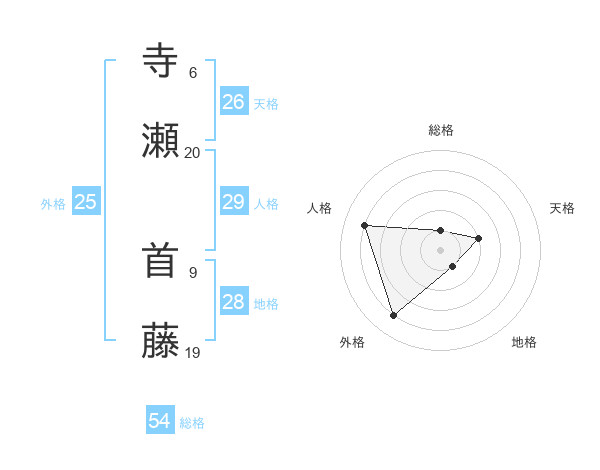 寺瀬 首藤さんの総格は54画の1点!