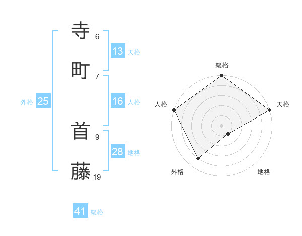 寺町 首藤さんの総格は41画の5点!