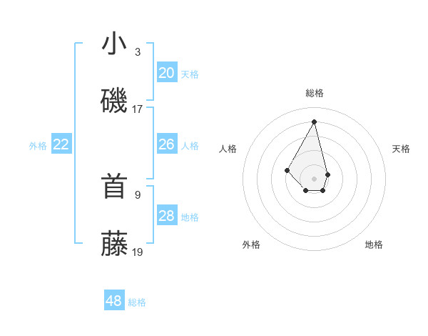 小磯 首藤さんを姓名の画数から五運を鑑定