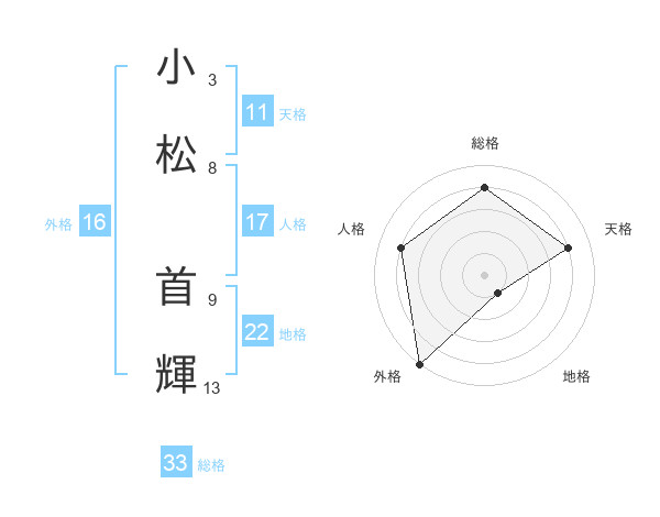 小松 首輝さんの総格は33画の4点!