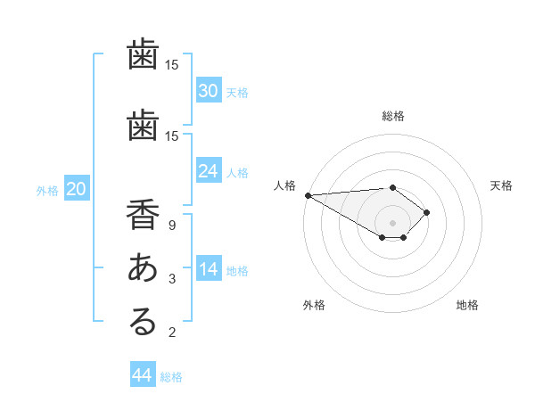 歯歯 香あるさんの総格は44画の2点!