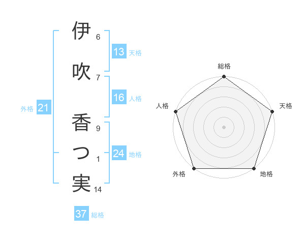 伊吹 香つ実さんを姓名の画数から五運を鑑定