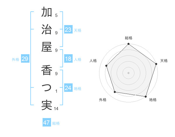 加治屋 香つ実さんを姓名の画数から五運を鑑定