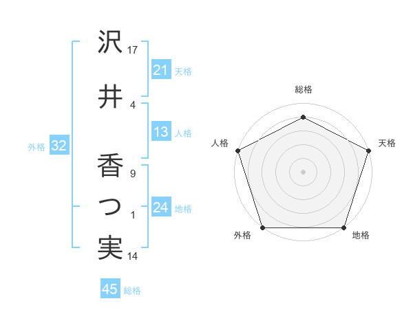沢井 香つ実さんを姓名の画数から五運を鑑定