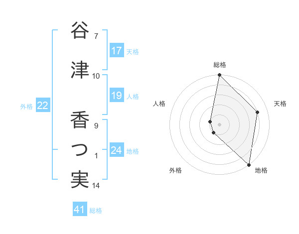 谷津 香つ実さんを姓名の画数から五運を鑑定