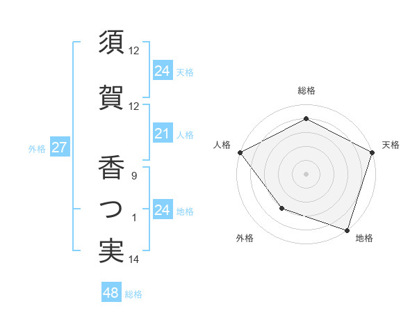 須賀 香つ実さんを姓名の画数から五運を鑑定