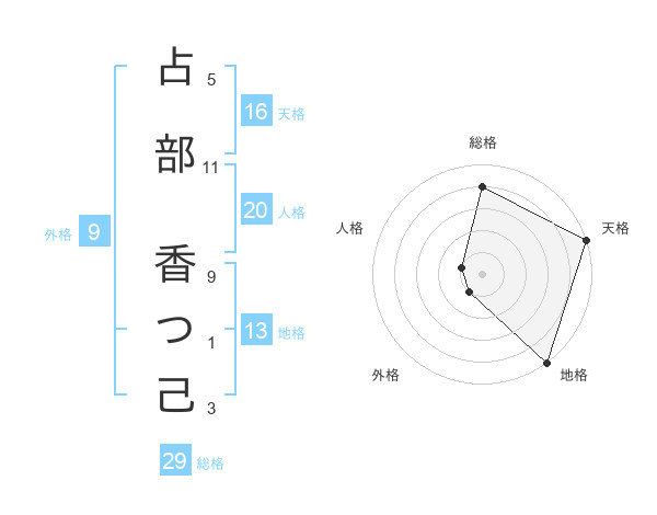 占部 香つ己さんを姓名の画数から五運を鑑定
