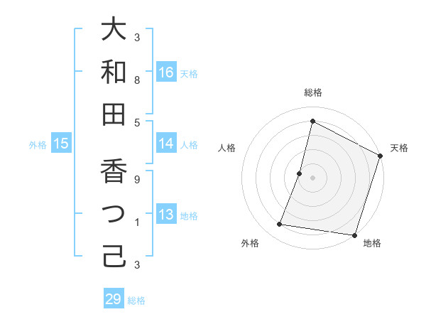 大和田 香つ己さんを姓名の画数から五運を鑑定