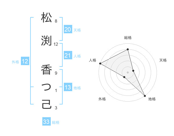 松渕 香つ己さんを姓名の画数から五運を鑑定