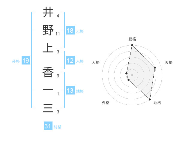 井野上 香一三さんを姓名の画数から五運を鑑定