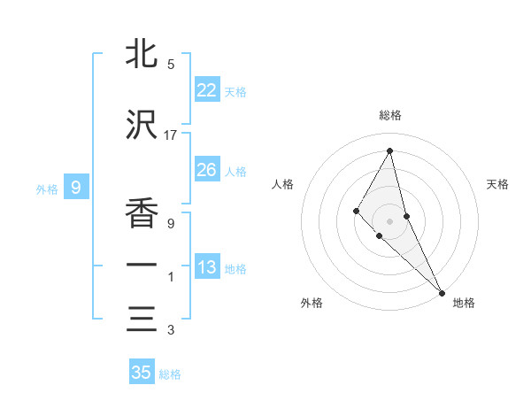 北沢 香一三さんを姓名の画数から五運を鑑定