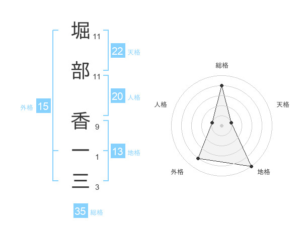 堀部 香一三さんを姓名の画数から五運を鑑定