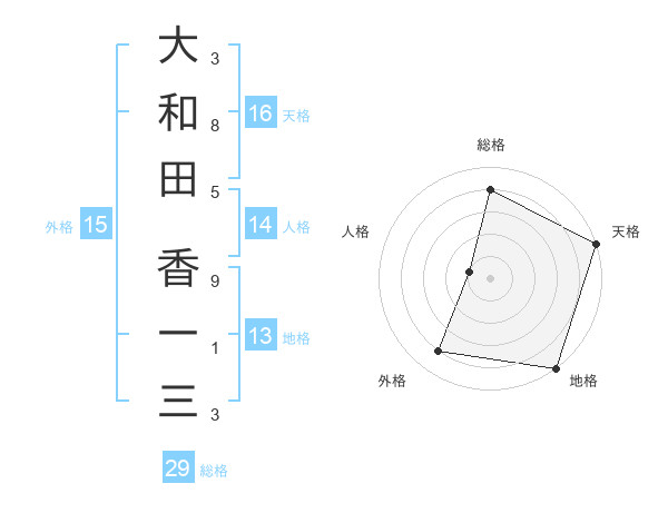 大和田 香一三さんを姓名の画数から五運を鑑定