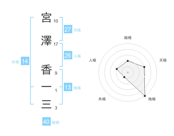 宮澤 香一三さんを姓名の画数から五運を鑑定