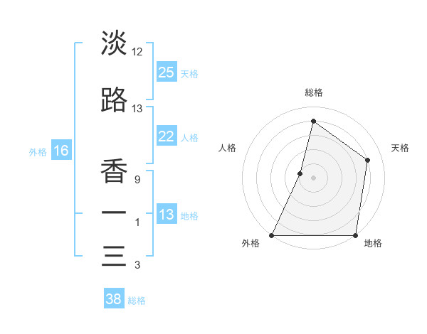 淡路 香一三さんの総格は38画の4点!