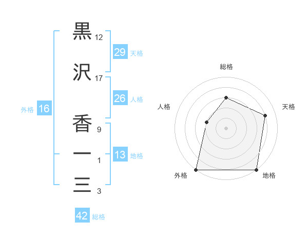 黒沢 香一三さんの総格は42画の3点!