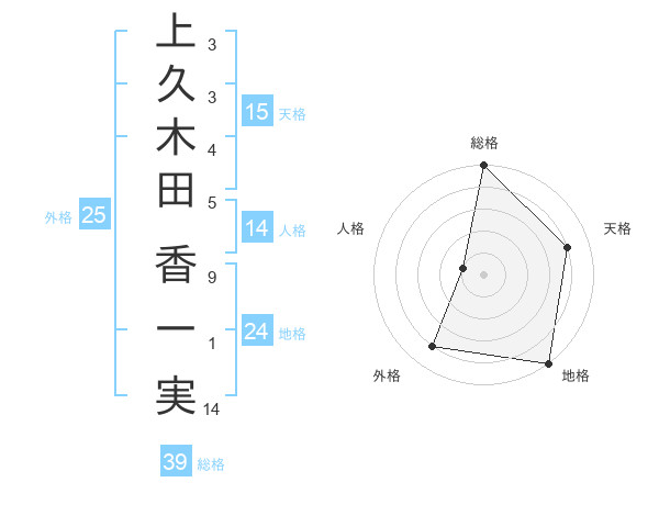 上久木田 香一実さんを姓名の画数から五運を鑑定