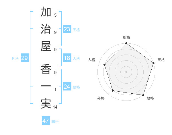 加治屋 香一実さんを姓名の画数から五運を鑑定