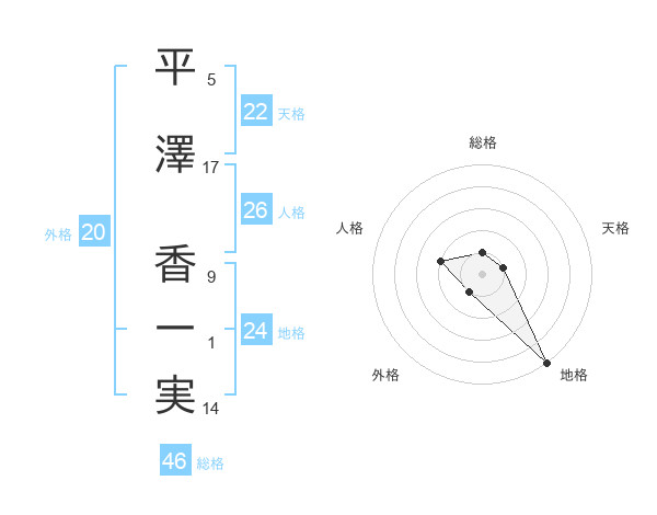 平澤 香一実さんの天格は22画の1点!