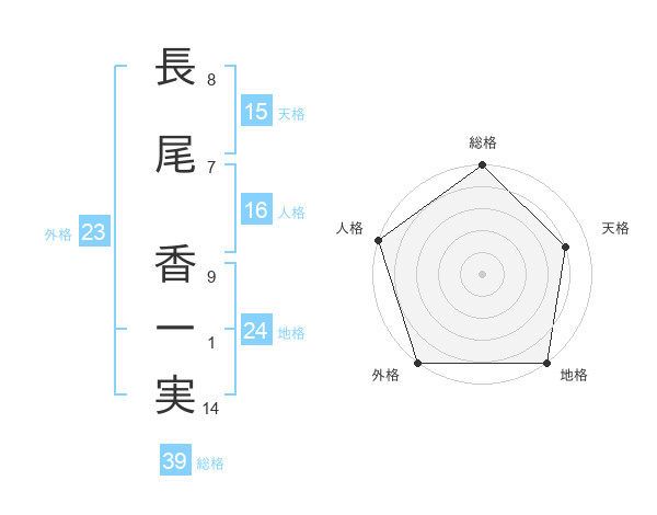 長尾 香一実さんを姓名の画数から五運を鑑定