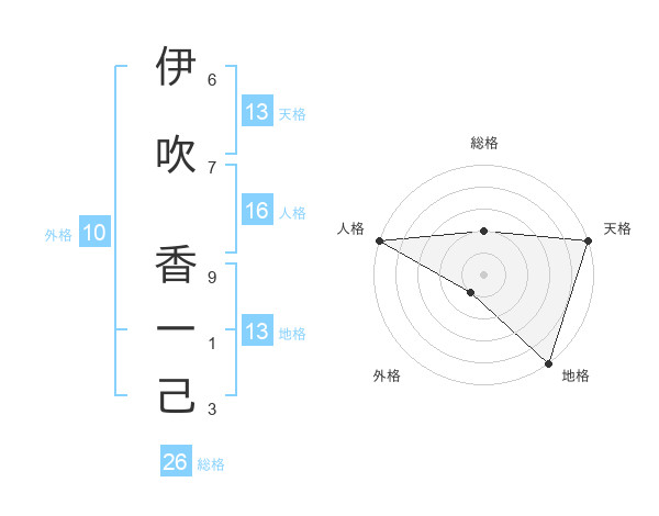 伊吹 香一己さんを姓名の画数から五運を鑑定