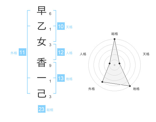 早乙女 香一己さんを姓名の画数から五運を鑑定
