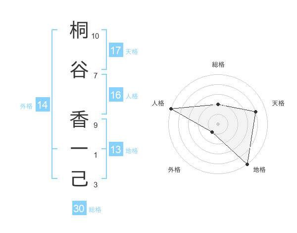 桐谷 香一己さんの天格は17画の4点!