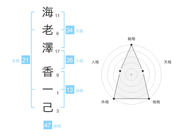 海老澤 香一己さんを姓名の画数から五運を鑑定