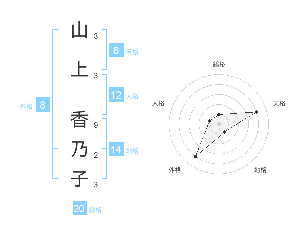 山上 香乃子さんを姓名の画数から五運を鑑定