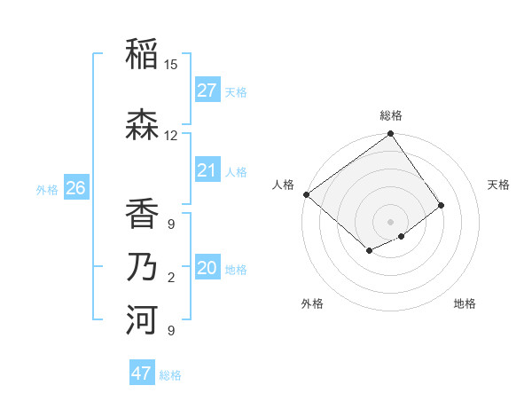 稲森 香乃河さんの総格は47画の5点!