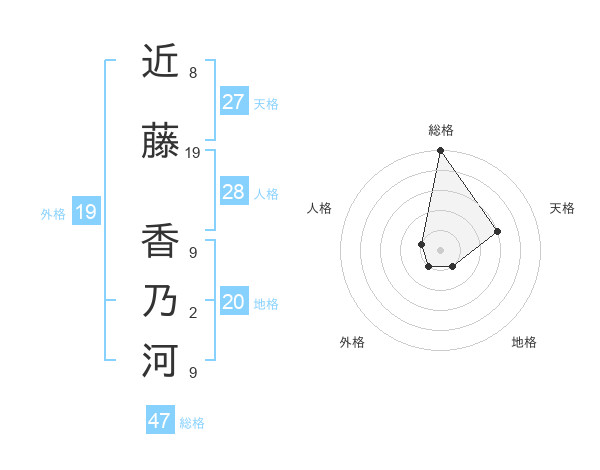 近藤 香乃河さんの総格は47画の5点