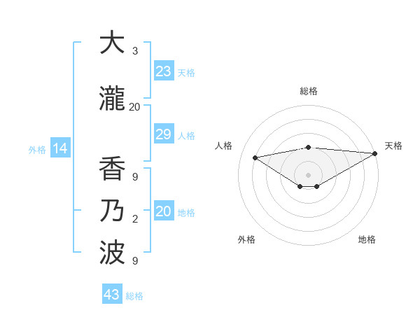 大瀧 香乃波さんの総格は43画の2点!