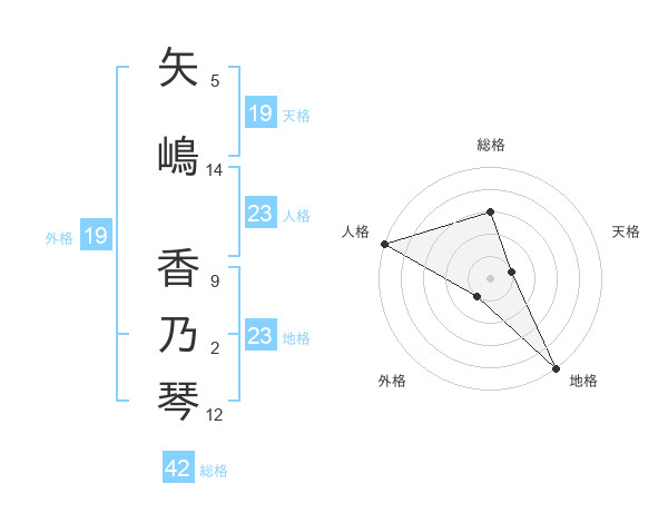 矢嶋 香乃琴さんの地格は23画の5点!
