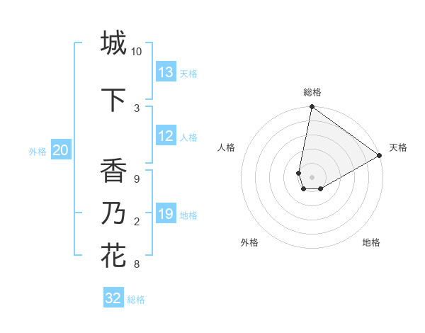 城下 香乃花さんの天格は13画の5点!