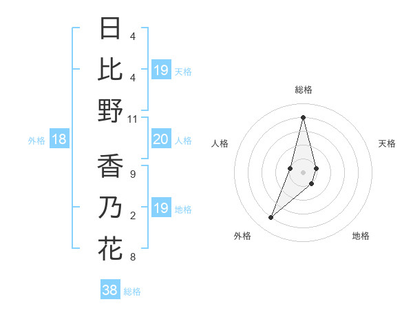 日比野 香乃花さんの総格は38画の4点