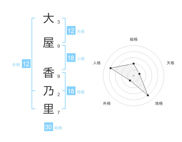 大屋 香乃里さんの総格は30画の2点!