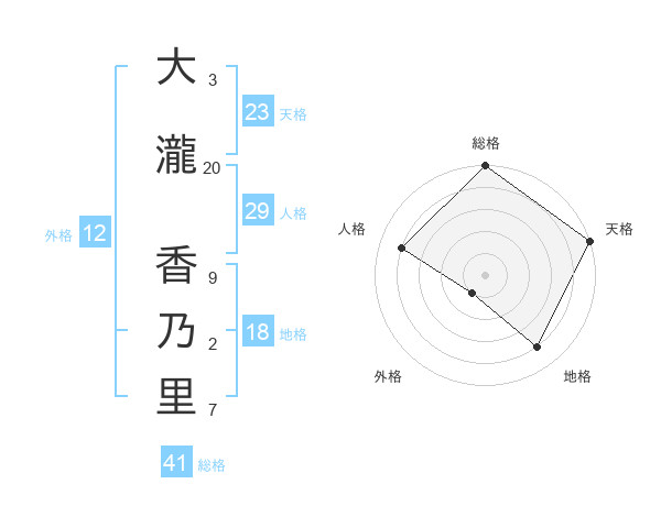 大瀧 香乃里さんを姓名の画数から五運を鑑定