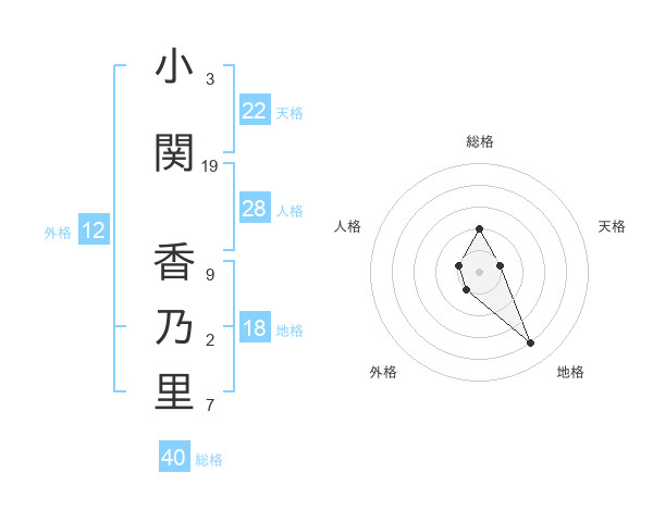 小関 香乃里さんを姓名の画数から五運を鑑定