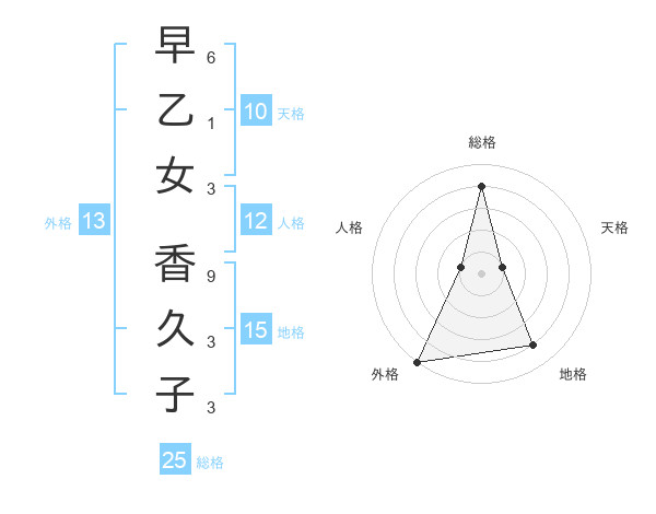 早乙女 香久子さんを姓名の画数から五運を鑑定