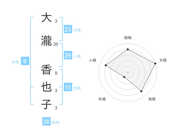 大瀧 香也子さんの総格は38画の4点