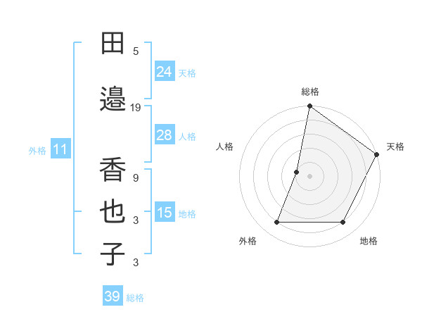 田邉 香也子さんの天格は24画の5点!