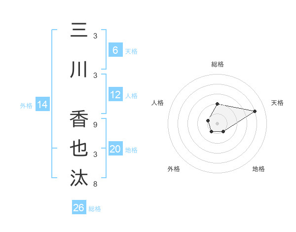 三川 香也汰さんを姓名の画数から五運を鑑定