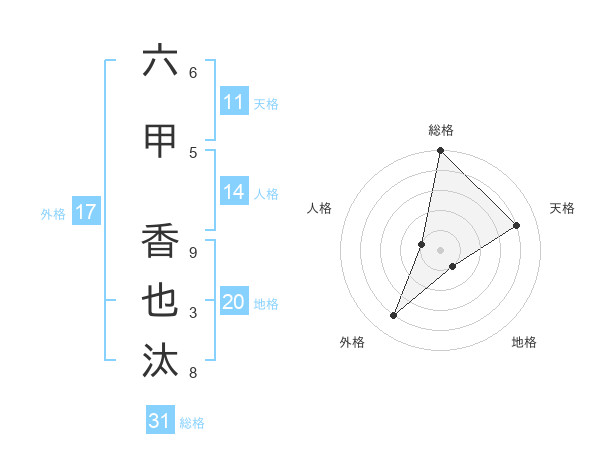 六甲 香也汰さんを姓名の画数から五運を鑑定