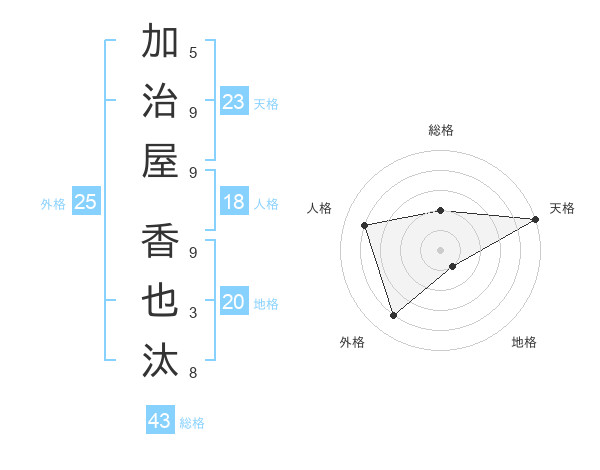 加治屋 香也汰さんの天格は23画の5点